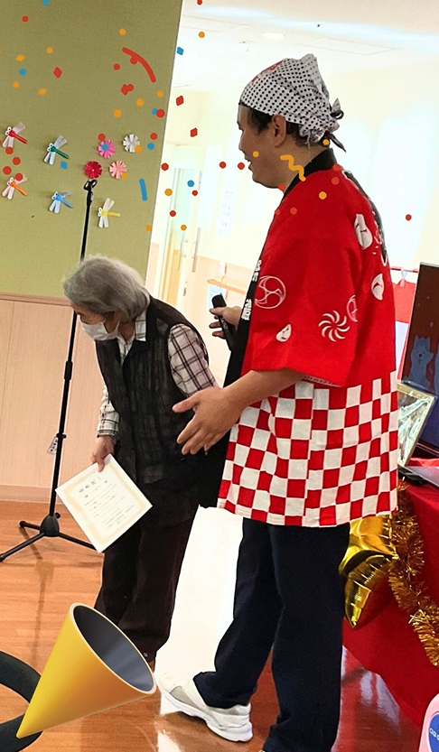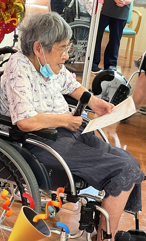 職員からの感謝の気持ちとともに、入居者の皆さまの長寿をお祝いしました。